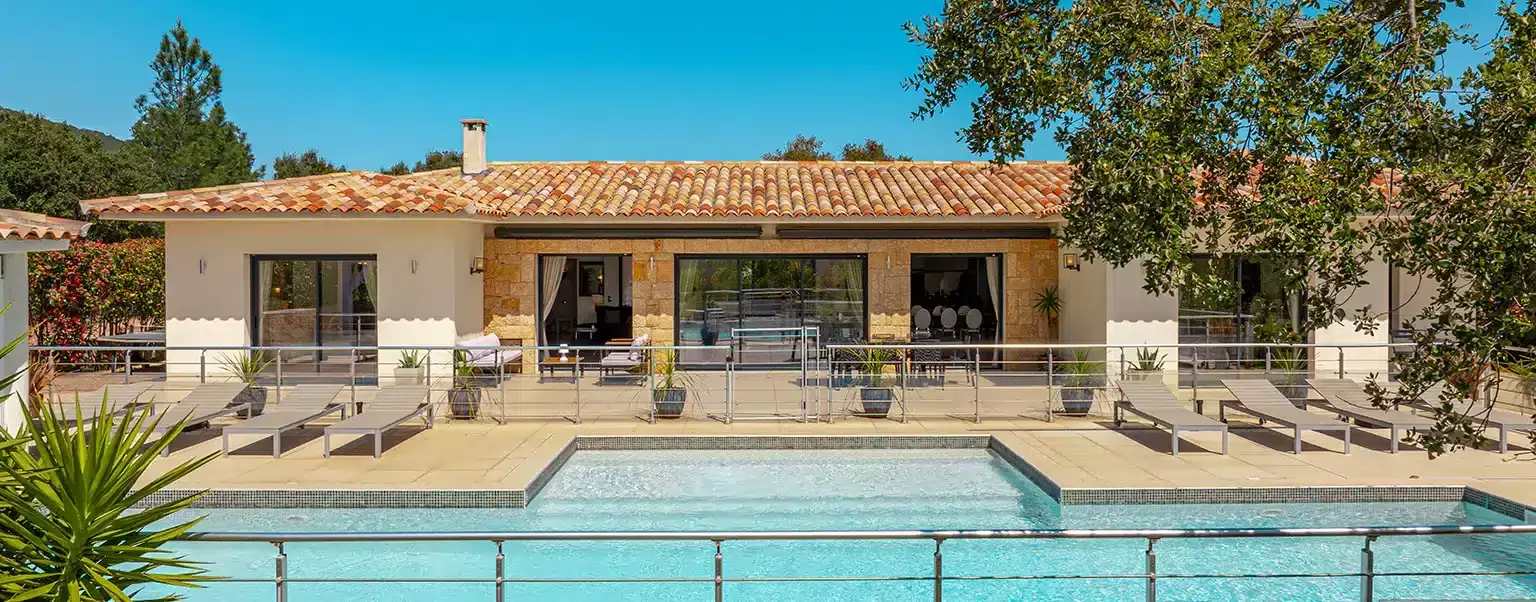 jardin2piscineespace-détente-3 Villa Les Arbousiers Location de Villa à Porto Vecchio • Classée 5 étoiles • 4 Chambres et 4 salles de bains en suite • Piscine chauffée • 6 min du Centre-ville de Porto Vecchio • Location de samedi à samedi • 9 Personnes Borne de recharge électrique type 2 (32A) Découvrir Villa 210m2 Villa de plain-pied « Meublé de Tourisme » – 5 Etoiles Arrêté N° C338/2023 – 9 personnes Réservation de samedi à samedi EXCLUSIVEMENT ! Réservation Proche des plages Réservation